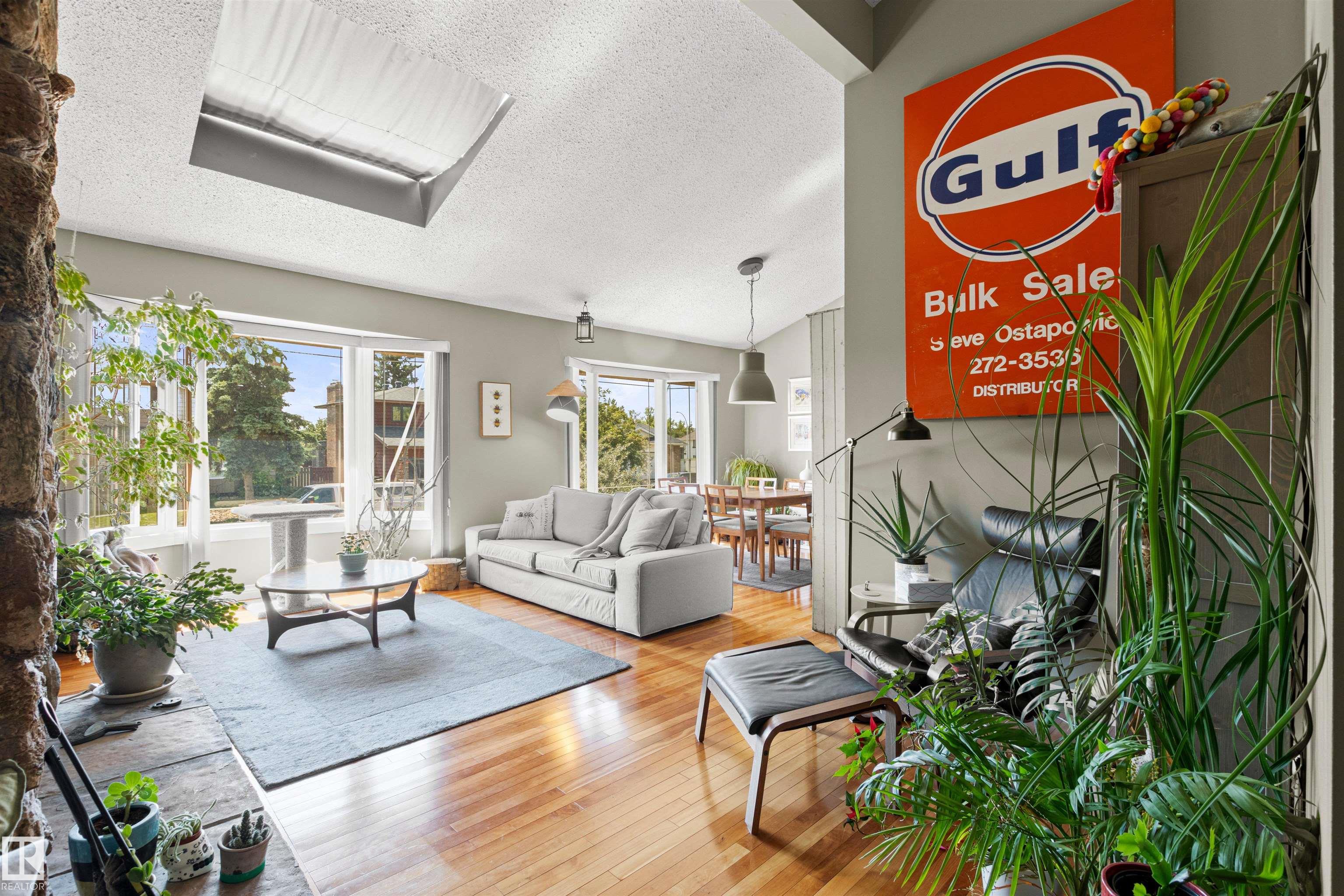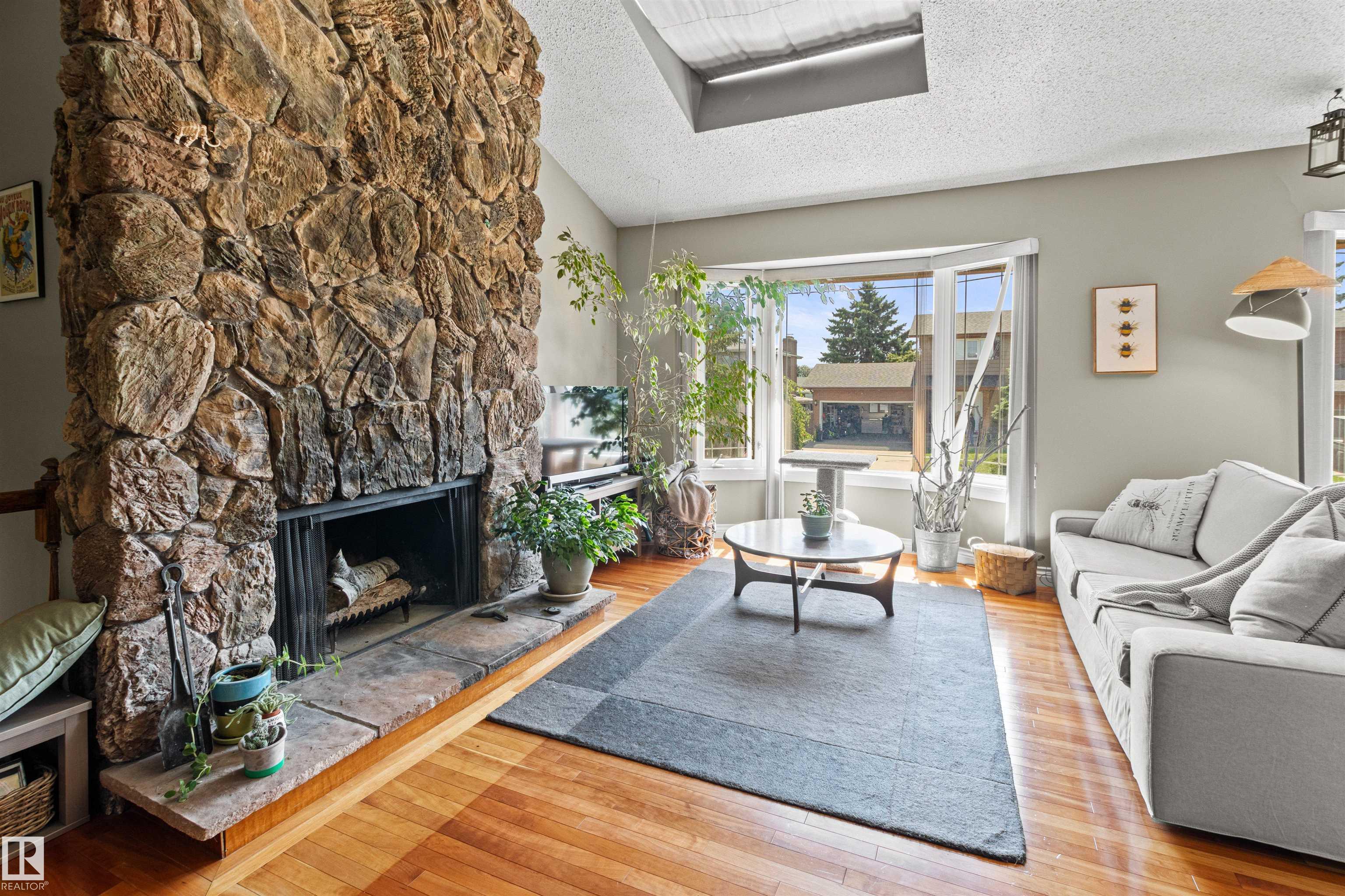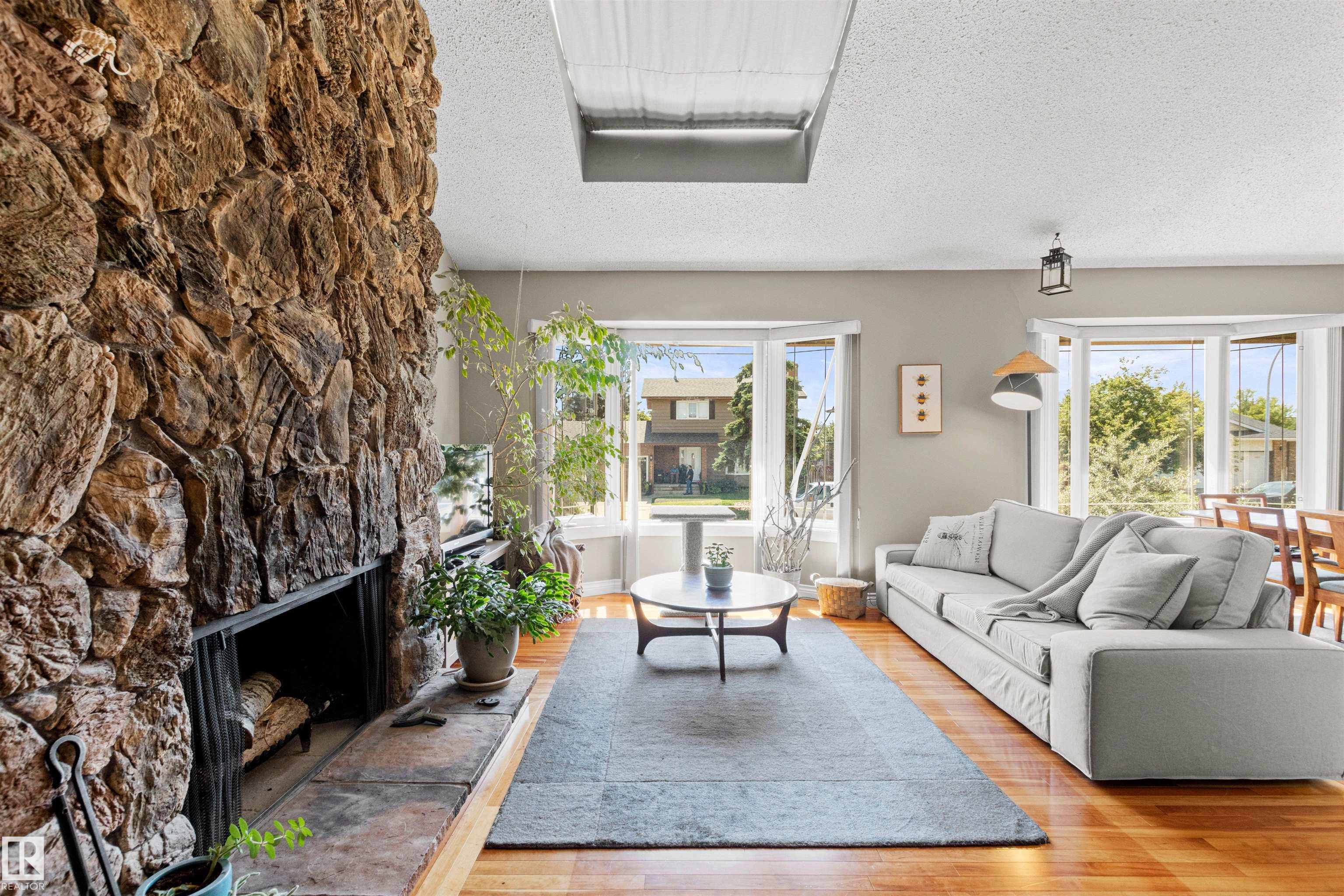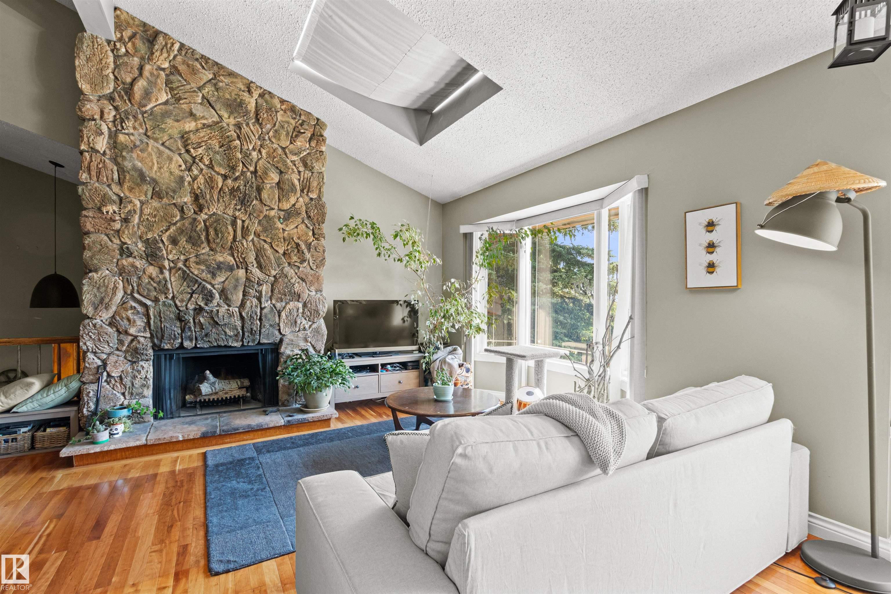 This upgraded bi-level blends timeless mid-century design with modern comfort. The dramatic vaulted ceilings and skylight flood the main floor with natural light, giving the living and dining areas an airy, inviting feel. Hardwood, tile, upgraded broadloom, and a stone-faced fireplace add warmth and character throughout. The kitchen is a standout with granite counters, soft-close stained cabinetry, and upgraded appliances. Triple-pane windows and neutral paint complement the wide trim and baseboards. Upstai...
