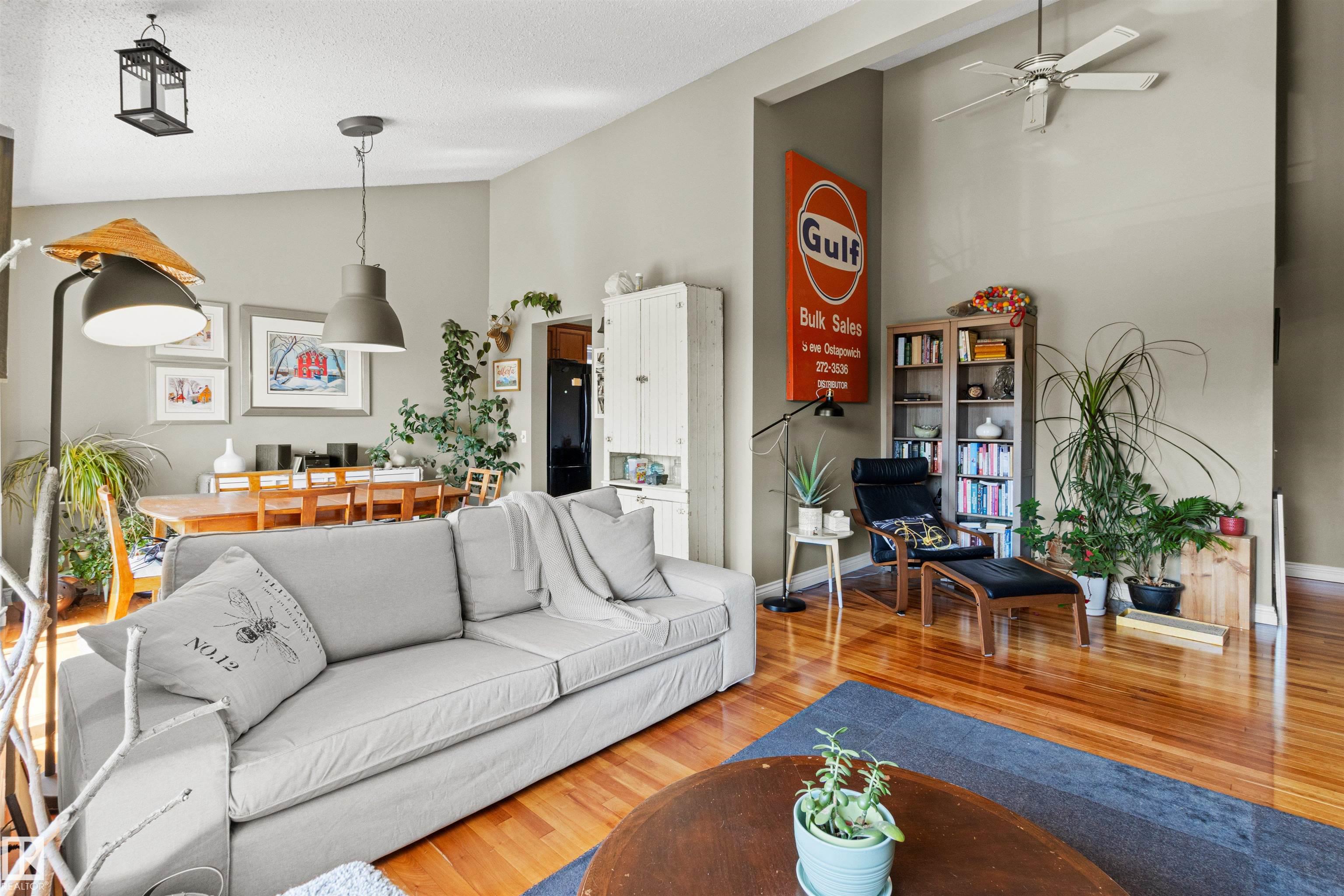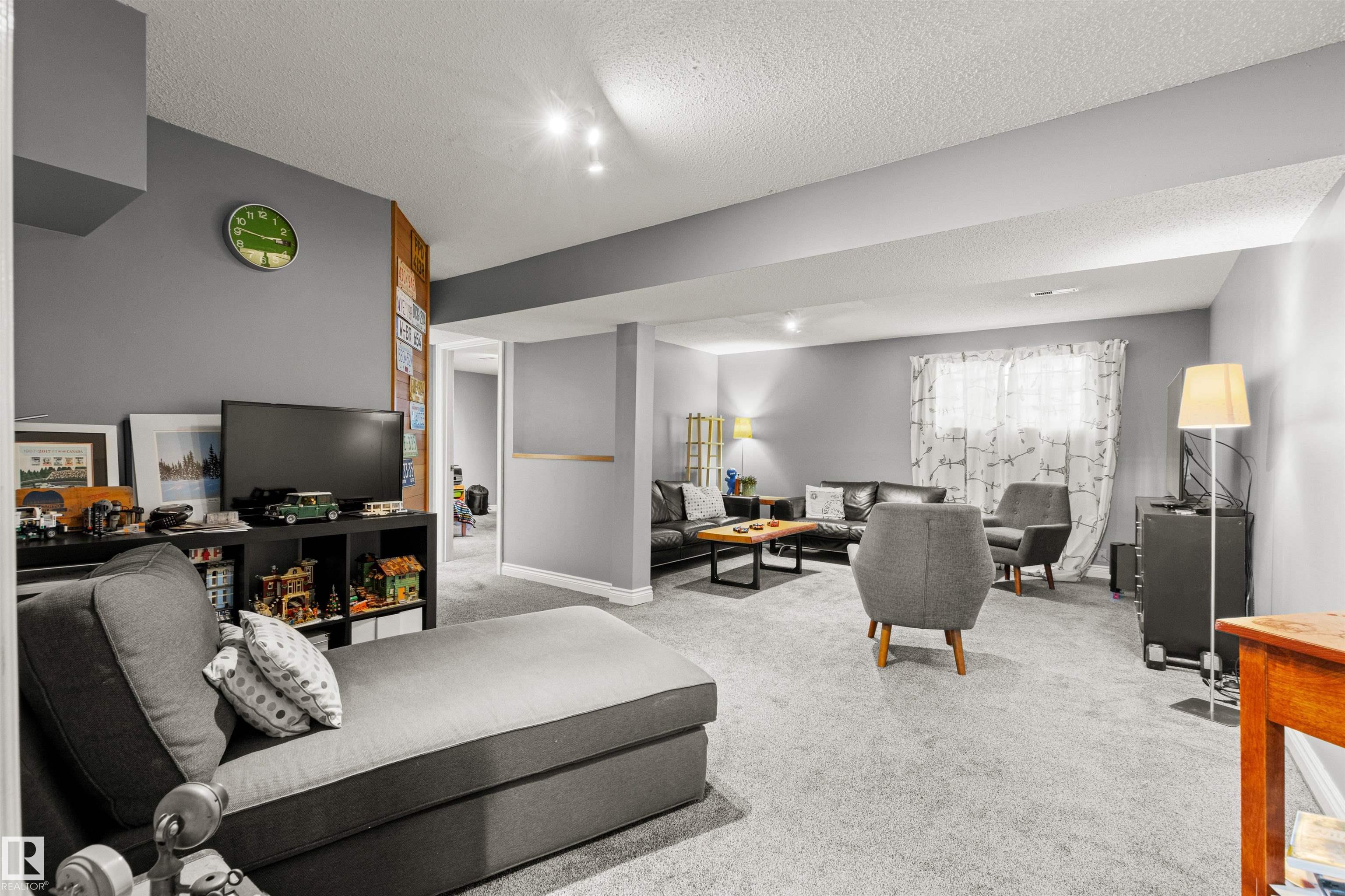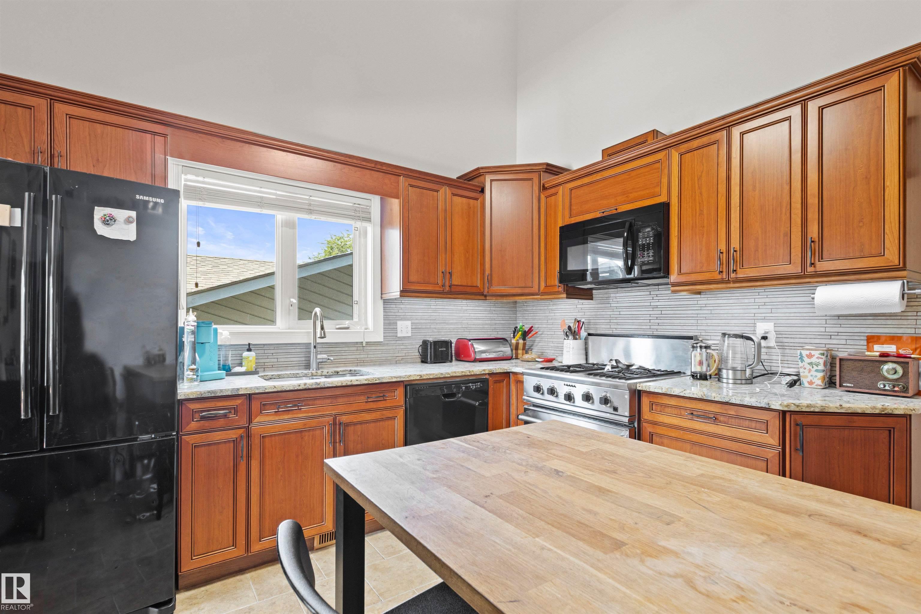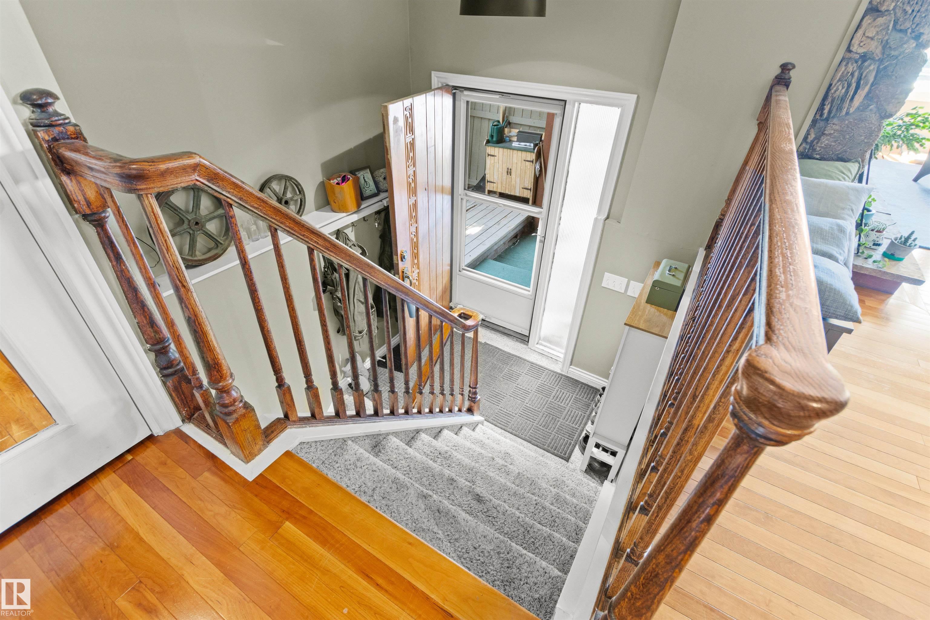 This upgraded bi-level blends timeless mid-century design with modern comfort. The dramatic vaulted ceilings and skylight flood the main floor with natural light, giving the living and dining areas an airy, inviting feel. Hardwood, tile, upgraded broadloom, and a stone-faced fireplace add warmth and character throughout. The kitchen is a standout with granite counters, soft-close stained cabinetry, and upgraded appliances. Triple-pane windows and neutral paint complement the wide trim and baseboards. Upstai...