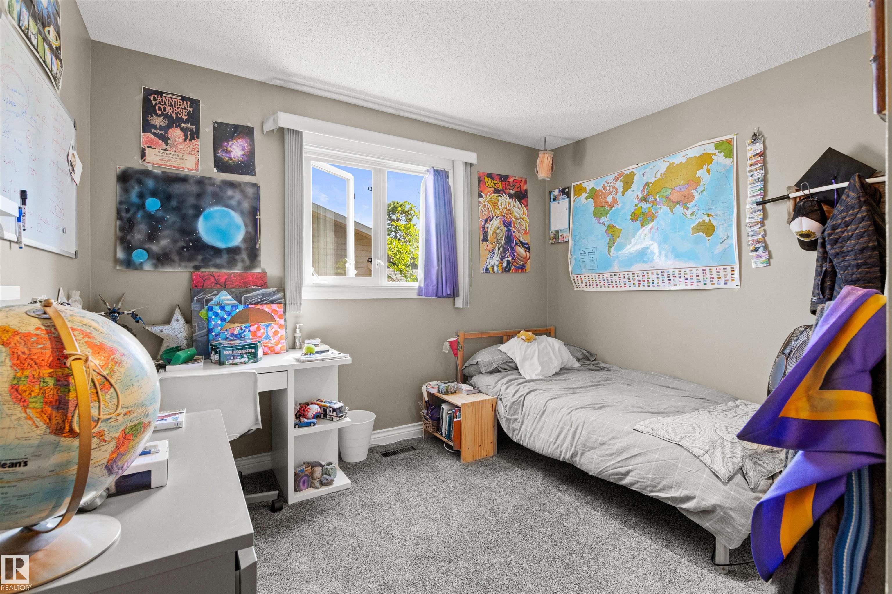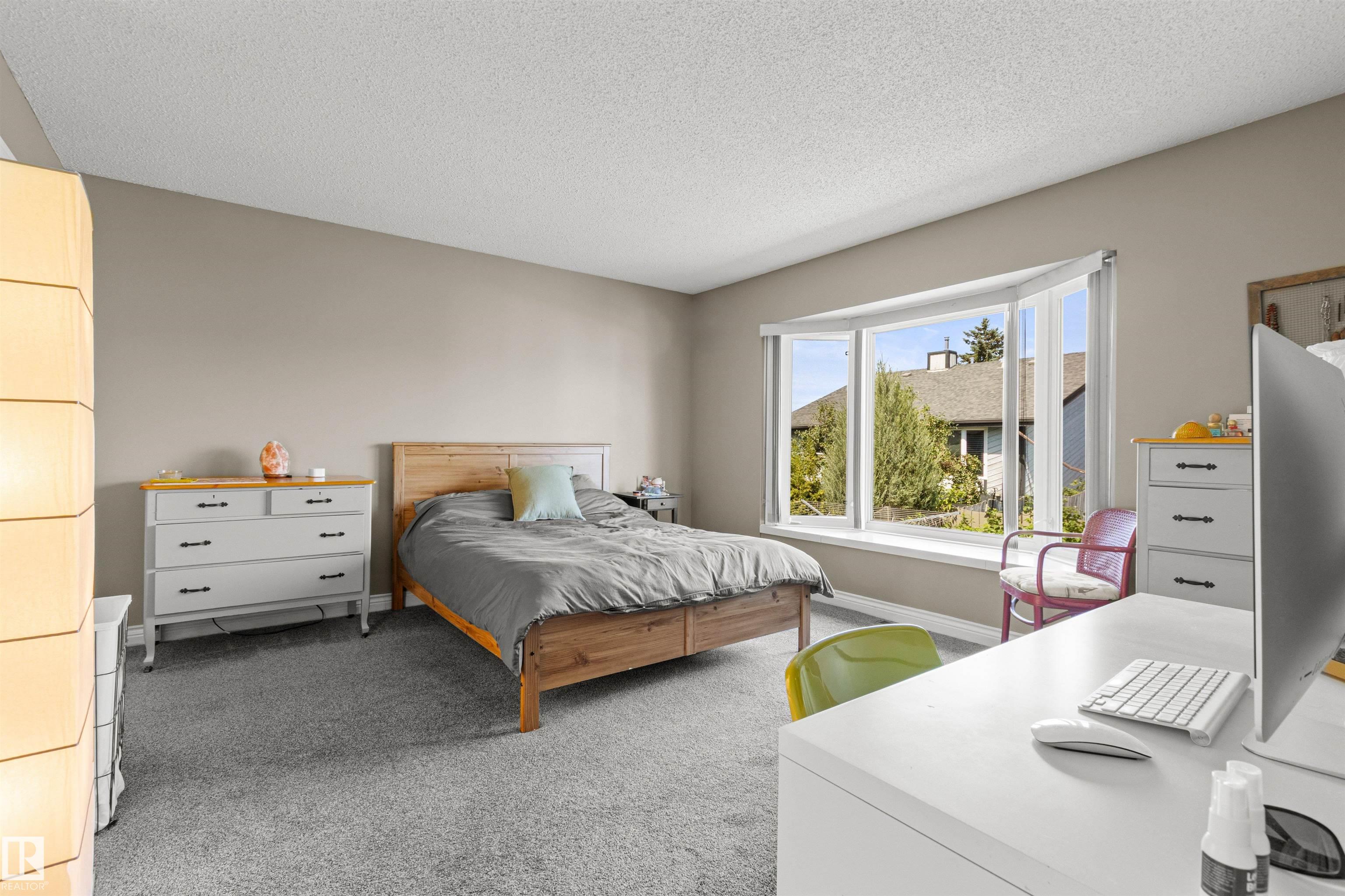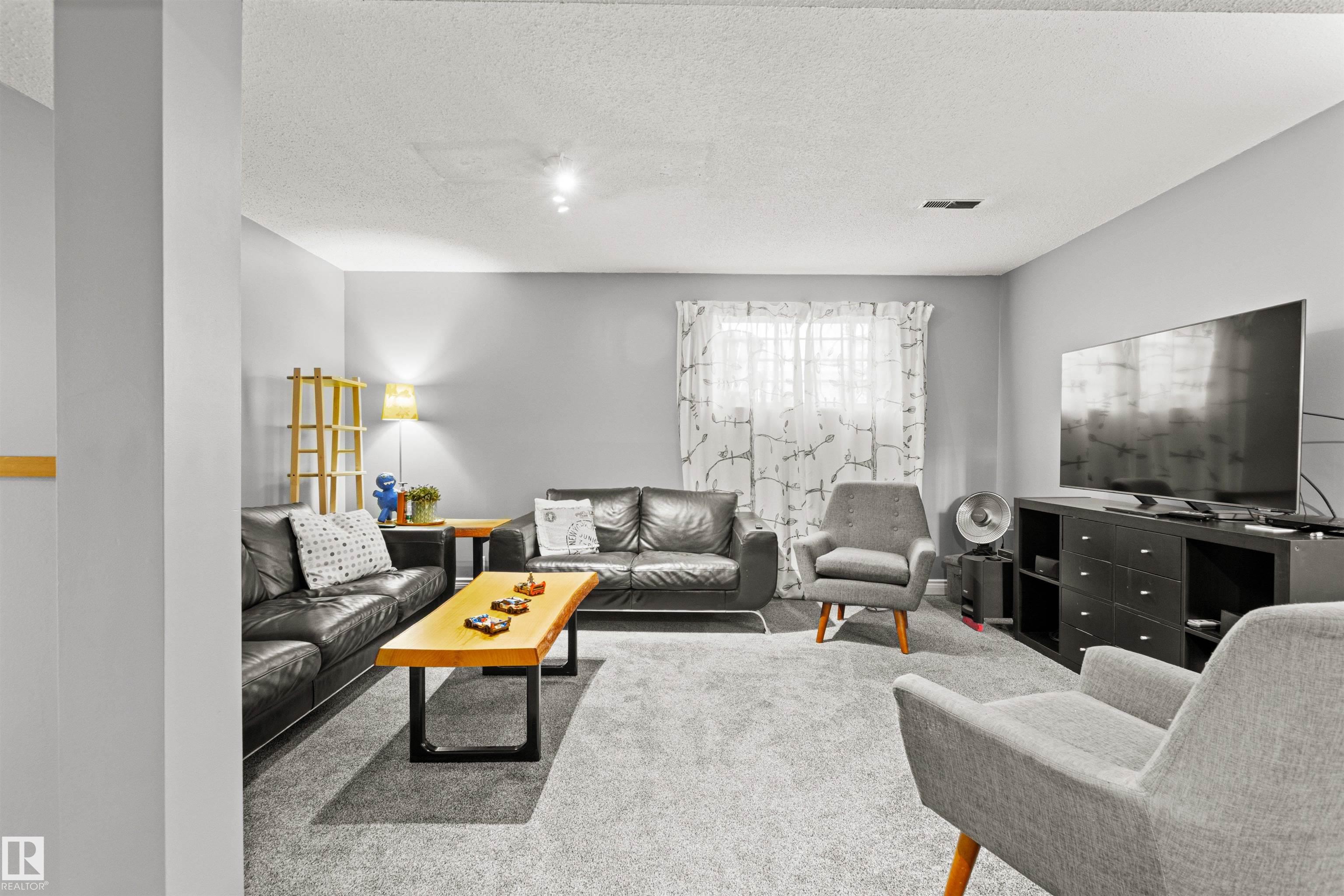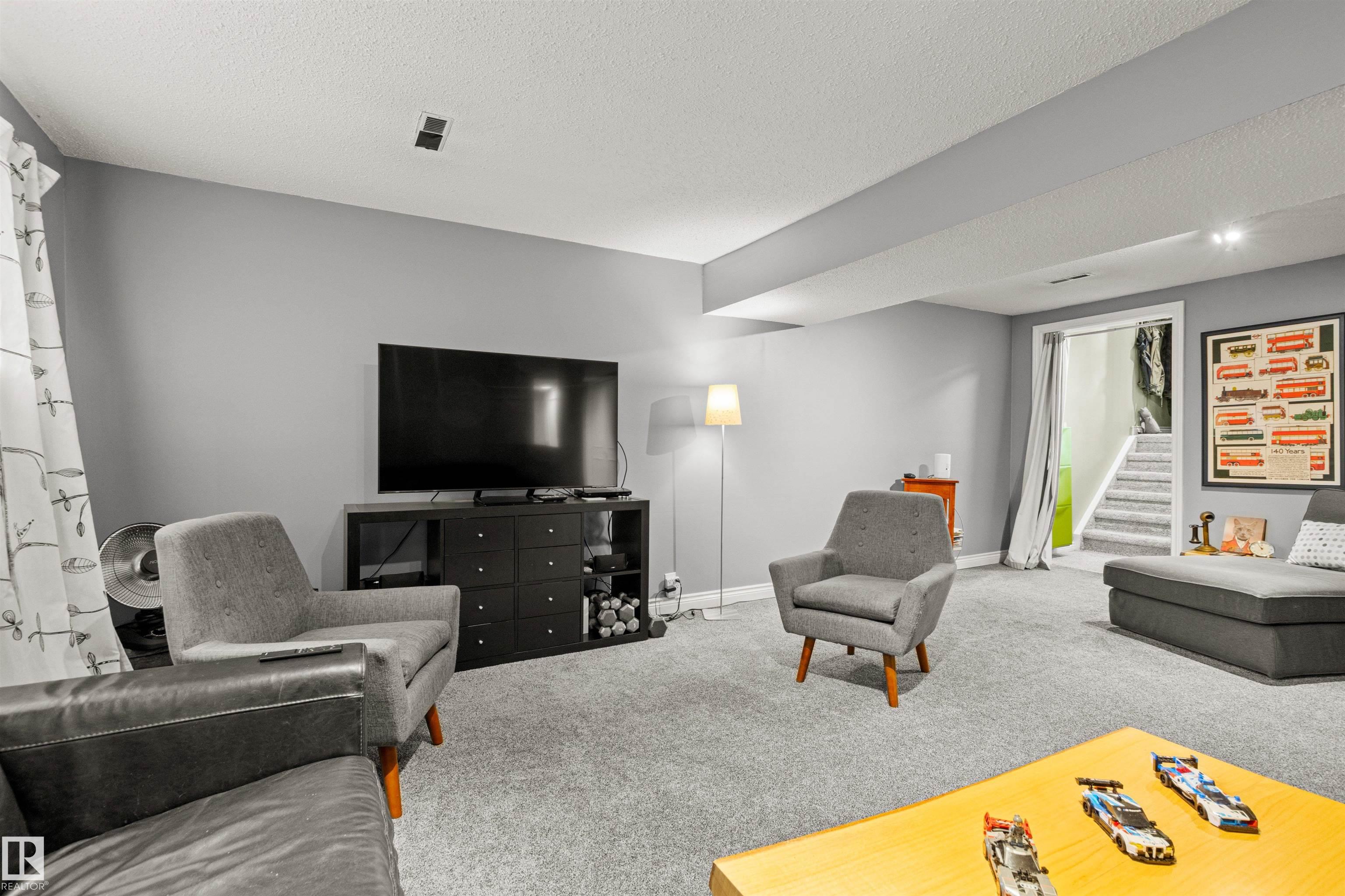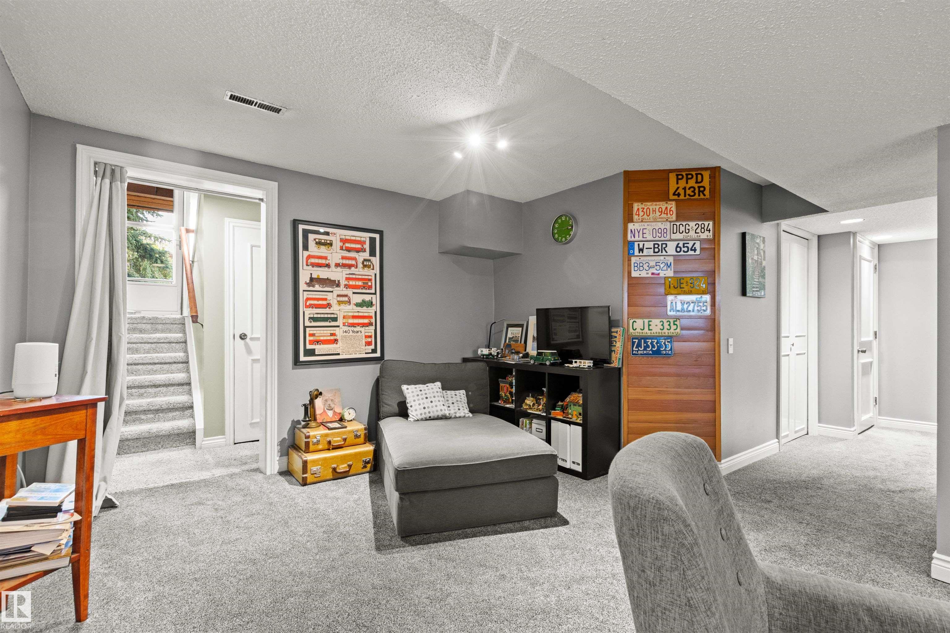 This upgraded bi-level blends timeless mid-century design with modern comfort. The dramatic vaulted ceilings and skylight flood the main floor with natural light, giving the living and dining areas an airy, inviting feel. Hardwood, tile, upgraded broadloom, and a stone-faced fireplace add warmth and character throughout. The kitchen is a standout with granite counters, soft-close stained cabinetry, and upgraded appliances. Triple-pane windows and neutral paint complement the wide trim and baseboards. Upstai...
