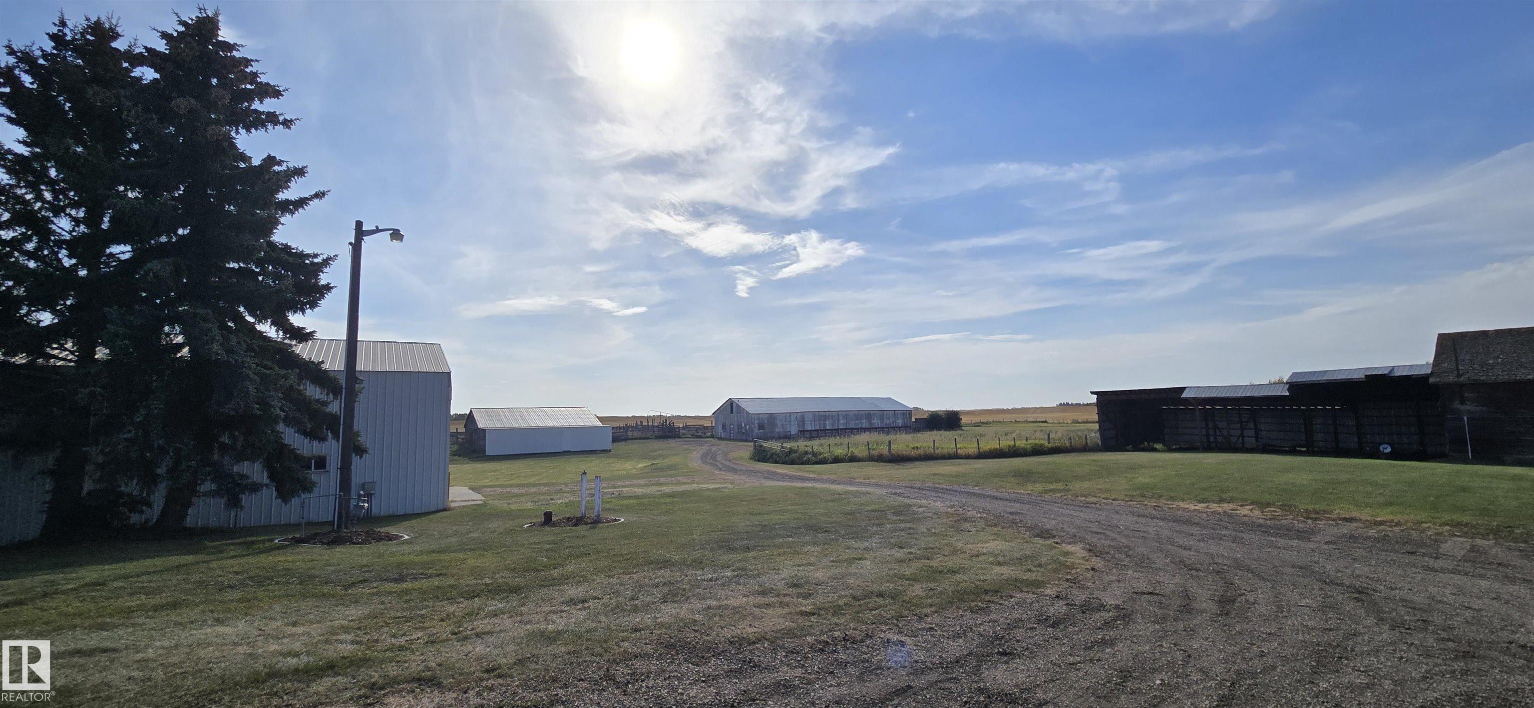 Pure country bliss literally across the road from Vegreville on 34.87 acres! Built in 2008, this open concept bungalow features a beautiful oak kitchen with island, ample dining area and living room with a wood burning stove. Three bedrooms on the main with one converted to main floor laundry, a 2 piece bath and a 3 piece ensuite (walk-in shower) in the primary. Fully finished basement with wet bar, rec area, two bedrooms and storage room with built in shelving. Through the front entry way you have access t...