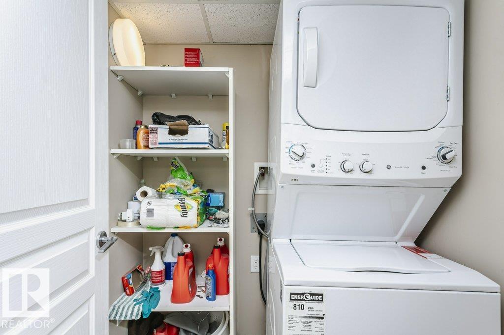 Amazing location in Sherwood Park! This second-floor unit in the sought-after Palisades (300 building) offers 1 bedroom plus den in a well-maintained 18+ complex. The modern open-concept layout features a U-shaped kitchen with eat-up bar and ample counter space, flowing into the dining and living areas. The primary bedroom includes a walk-in closet with direct access to the full 4-piece bath. Enjoy the convenience of in-suite laundry with stacking washer/dryer and additional in-suite storage. The versatile ...