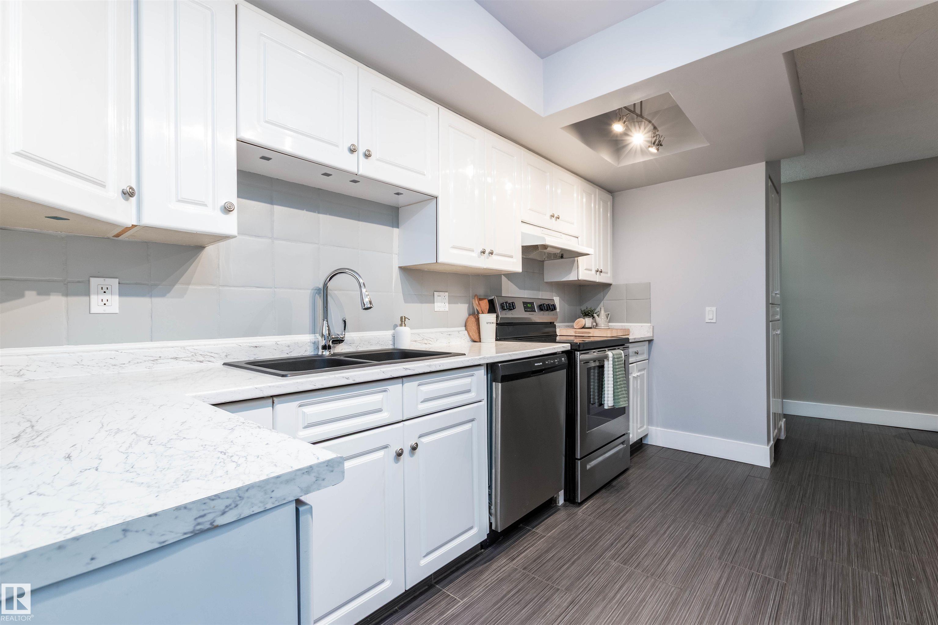 Welcome home to this Woodbridge Farms established executive lifestyle townhome. This tastefully upgraded end unit is spacious, bright and super convenient in the heart of the Park close to shopping, schools and transportation, trails and greenspace. Large eat-in kitchen with tons of storage, dining area with sunken family room (9ft ceilings). Windows galore! Primary bedroom has a double closet, private 4 piece bathroom and patio with west facing exposure. Two additional HUGE bedrooms plus 4 piece bathroom w...